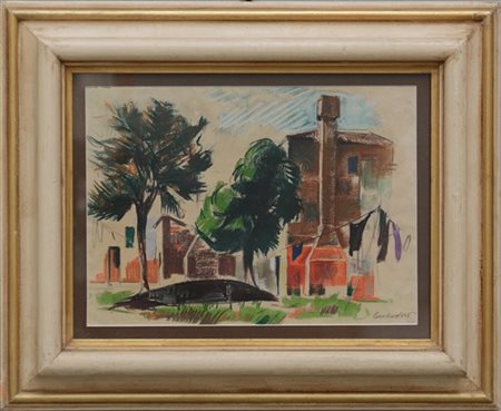 Silvio Consadori "Case a Venezia" tecnica mista su carta (cm 26x35.5) Firmato in