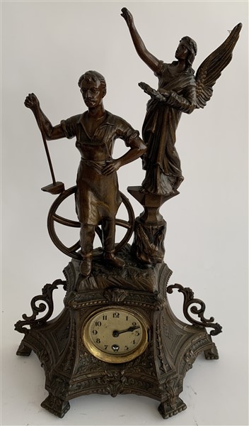 ANONIMO Orologio in metallo patinato. Cassa decorata da scultura a tutto tondo.