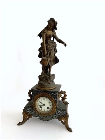 ANONIMO Pendola in marmo e antimonio decorata da figura femminile a tuttotondo.