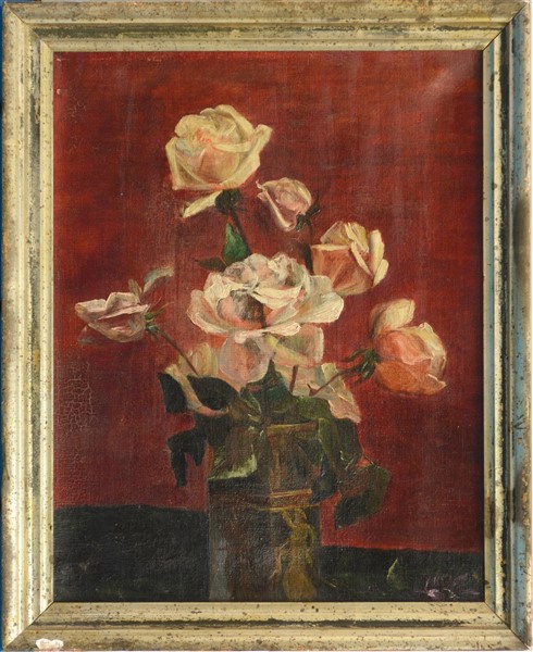 Ignoto "Fiori" olio su tela (cm 36x29) In cornice