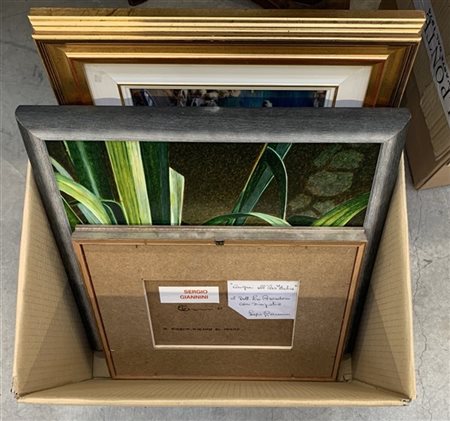 Cartone contenente sei dipinti di soggetti, misure, tecniche e autori diversi, di cui cinque in cornice