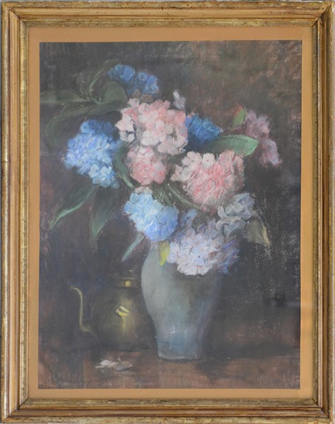 Firma indecifrata "Vaso con fiori" pastelli colorati su carta (cm 60x48) Firmat