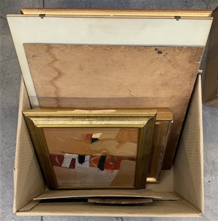 Cartone contenente otto dipinti, di cui quattro su tavola, di soggetti, misure,