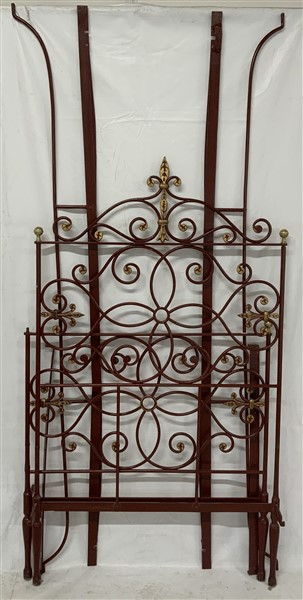 Letto singolo in ferro battuto laccato rosso (difetti)