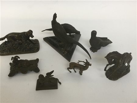 Lotto composto da sette sculture in bronzo raffiguranti animali, misure diverse