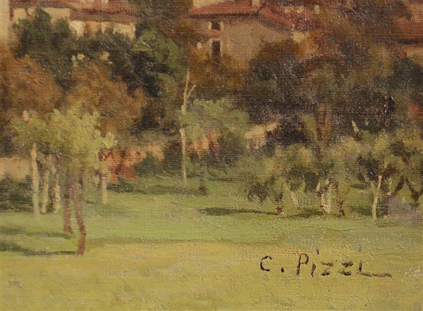Carlo Pizzi "Verso Lecco" olio su tela (cm 27x45) Firmato in basso a destra. (di