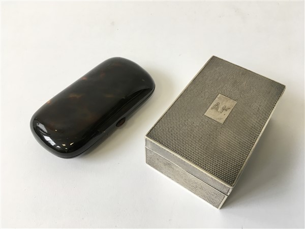 Una scatola in argento marcata Gucci e cifrata A.F. e due in tartaruga del secolo XIX