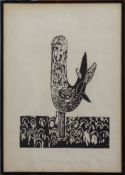 Gino Meloni "Gallo in giardino" 1952 litografia cm 68x49 numerata PA, firmata, d