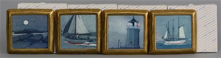 Pohlmann, gruppo di quattro multipli (cm 7x7) in cornici di ottone