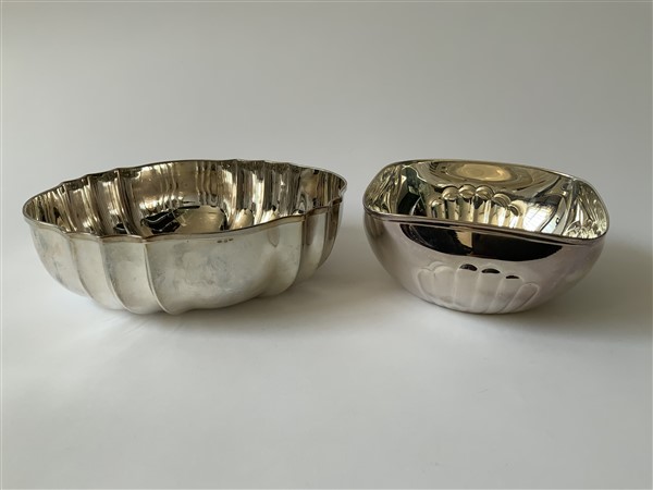 Lotto composto da due ciotole di diversa forma in argento liscio e scanalato. T