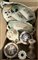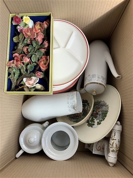 Lotto di tre cartoni contenenti numerosi oggetti per la tavola in ceramica di m