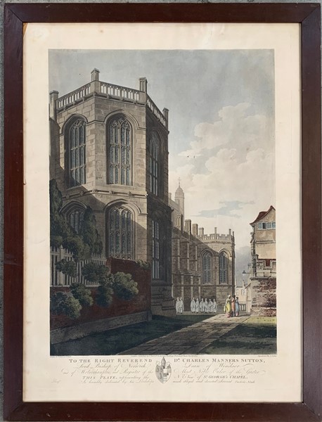 F. Nash (1782-1856) e J. Jeakes (secolo XIX) "Veduta della Cappella di San Giorgio" acquaforte e acquatinta (cm 54,5x39 all'impronta). In cornice