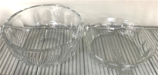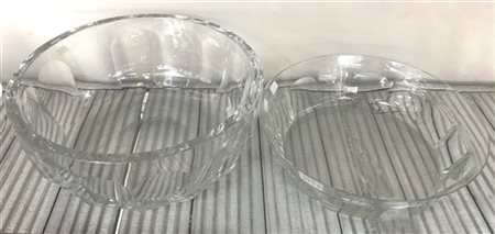 Manifatture diverse, lotto di due zuppiere in vetro e cristallo , una firmata Moser (d cm 24) (difetti)