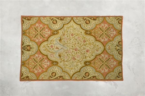 Tappeto piccolo punto, Francia, secolo XIX. Decoro con medaglione polilobato de