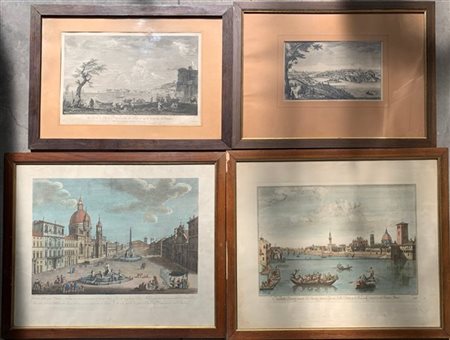 Lotto di tre antiche incisioni raffiguranti Praga, Napoli e Firenze, unite a du