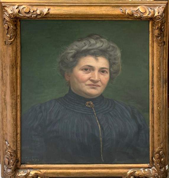 Coppia di dipinti ad olio su tela raffiguranti "Coniugi" (cm 60x50) Firmati in basso a destra e sinistra. In cornici