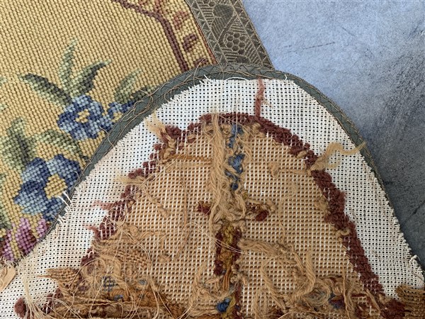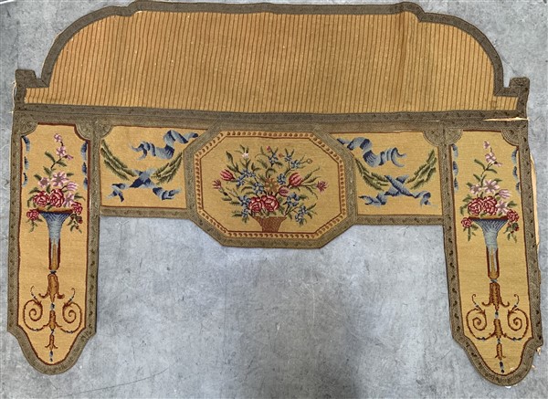 Mantovana, Francia, inizi del secolo XX. Confezionata con piccolo punto in lana con decoro floreale (cm 146x100) (difetti e rotture)