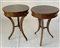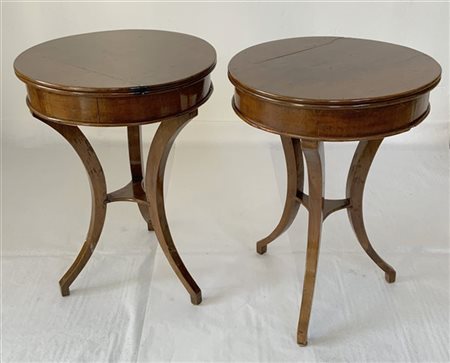 Coppia di tavolini tondi a tre gambe mosse riunite da crociera (cm 41x56x41) (difetti e restauri)
