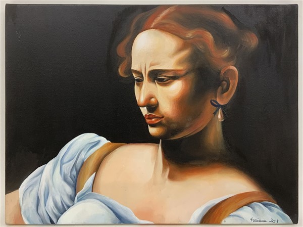 Ignoto, da Caravaggio "Giuditta" olio su tela (cm 30x40) firmato e datato in basso a sinistra