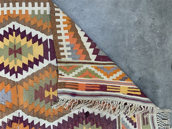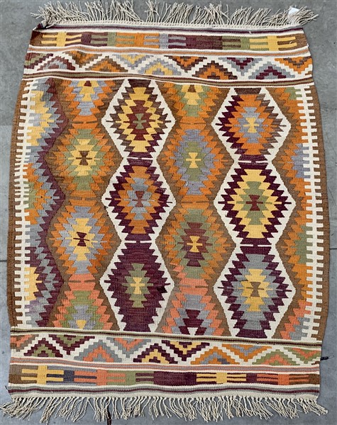 Tappeto Kilim, Anatolia, secolo XX. Decoro romboidale (cm 135x108) (difetti)
