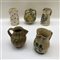 Lotto composto da quattro versatoi ed una fiasca in ceramica smaltata con decor