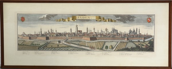 Riproduzione a colori della veduta Padova antica, in cornice (difetti)