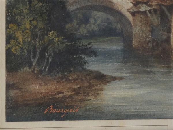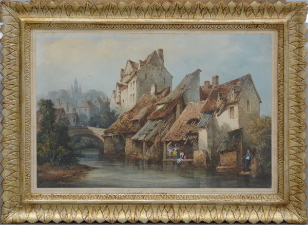 Eugène Victor Bourgeois "Le pont des Tanneurs" acquerello su cartoncino (cm 31x4