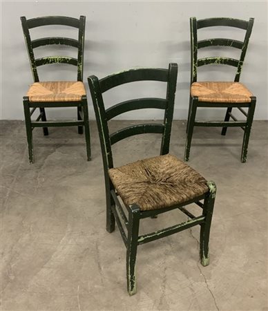 Lotto composto da un tavolo pieghevole e tre sedie laccate verdi