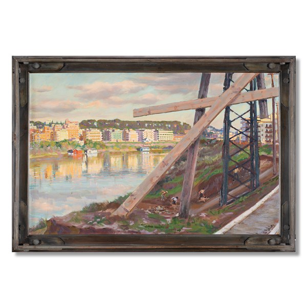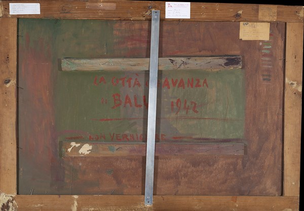 Giacomo Balla "La città che avanza" 1942 olio su tavola, in cornice originale de