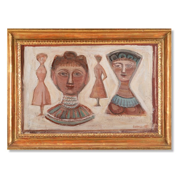Lot 18 | Massimo Campigli "Senza titolo (Quattro figure)" 1955 olio su tela cm 43x66 Firm