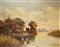 PITTORE ANONIMO ITALIANO DEL PRIMO '900 "Paesaggio lacustre" 91x118 olio su tela