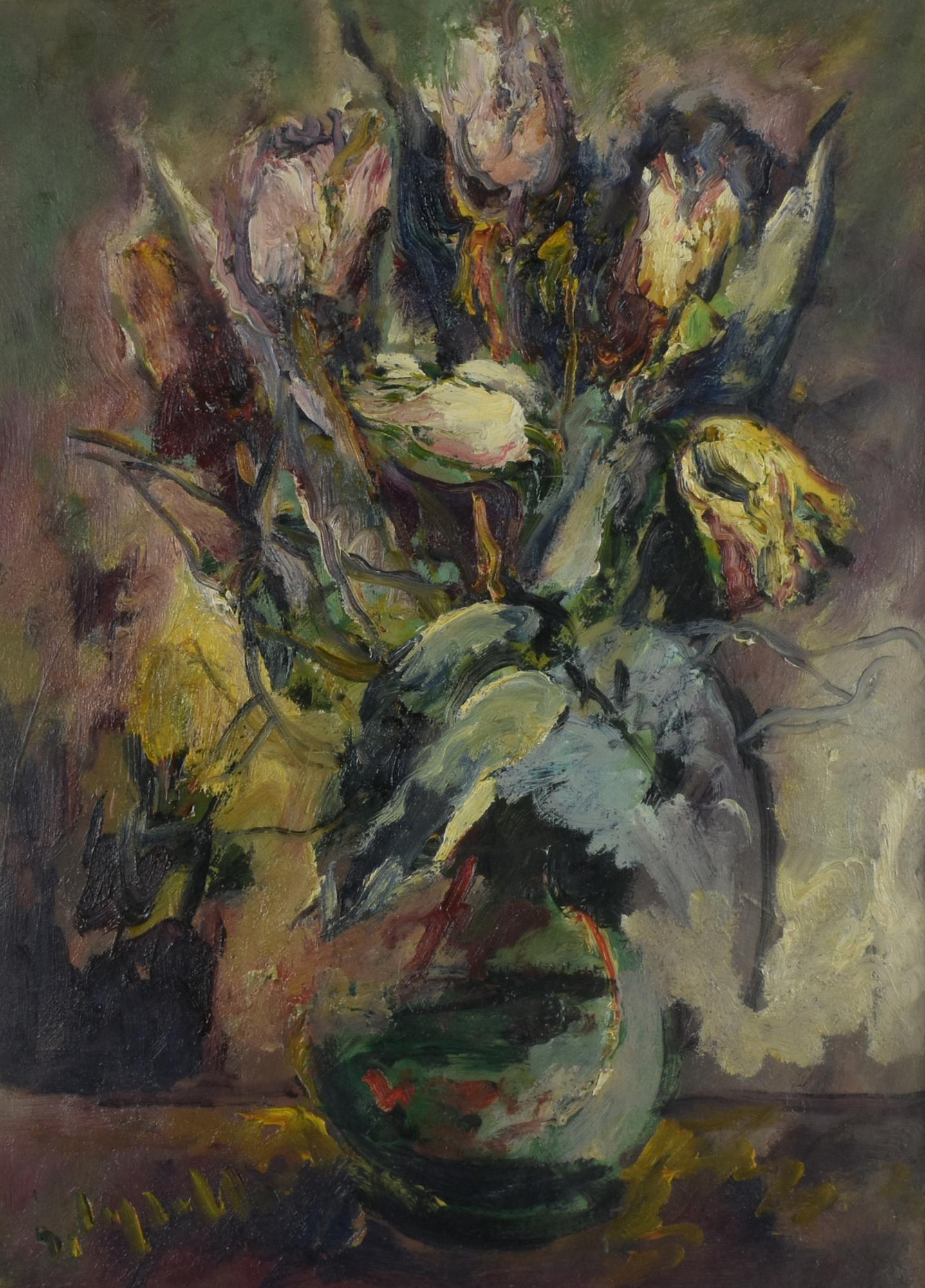 Ignoto VASO DI FIORI olio su tela, cm 70x50 firma sul retro: firma