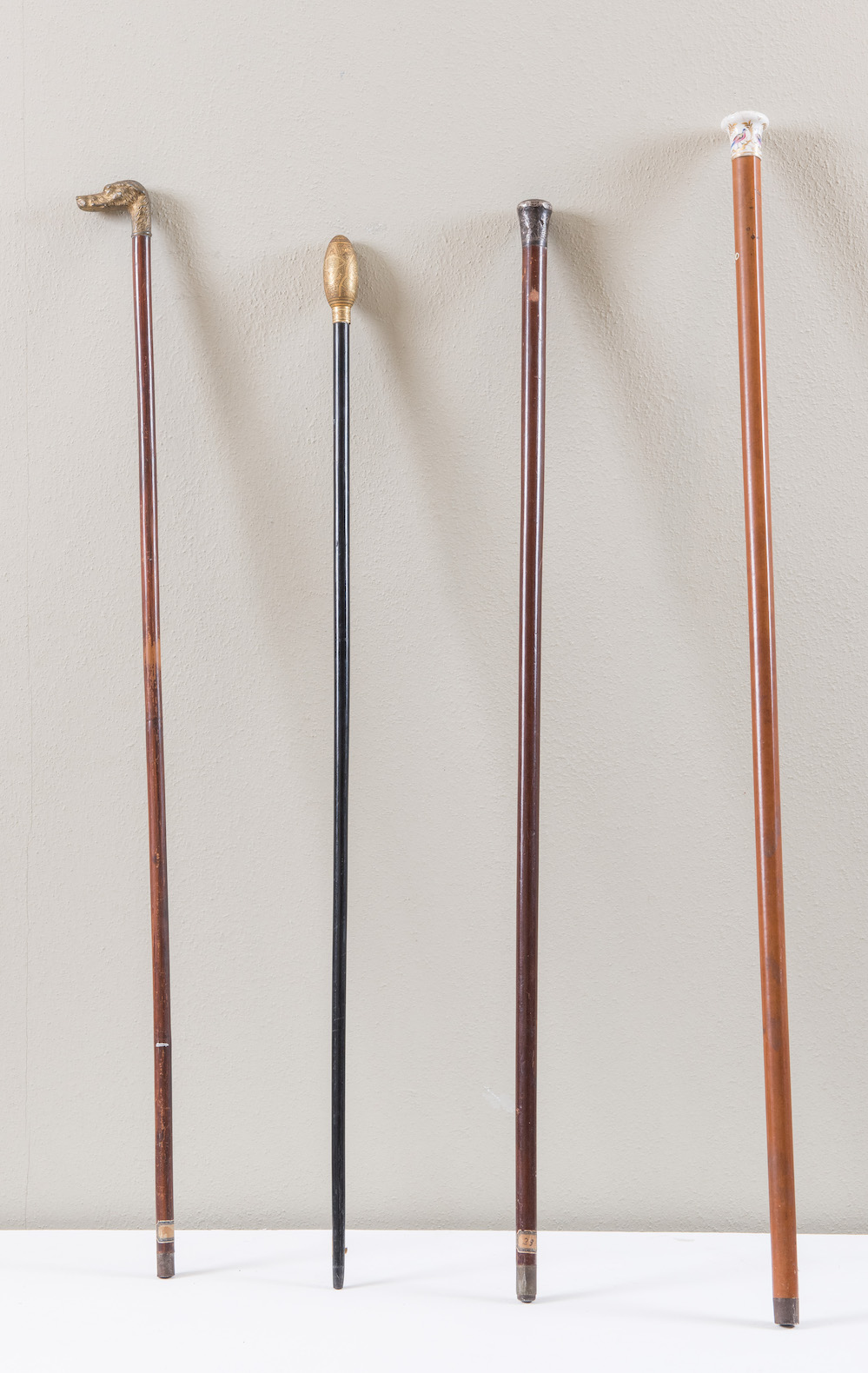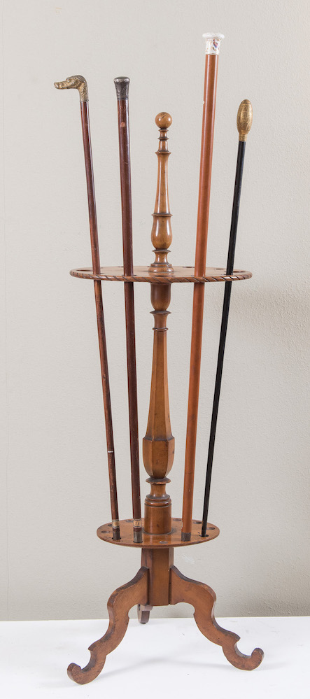 Lotto composto da quattro bastoni da passeggio e mobiletto portabastoni in...