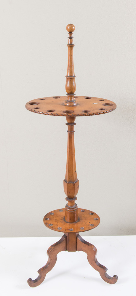 Lotto composto da quattro bastoni da passeggio e mobiletto portabastoni in ciliegio. Metà del XIX secolo. Cm 108x36x27.