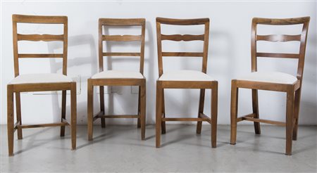 Lotto composto da otto seggiole in massello di noce. XX secolo. Cadauna di cm...