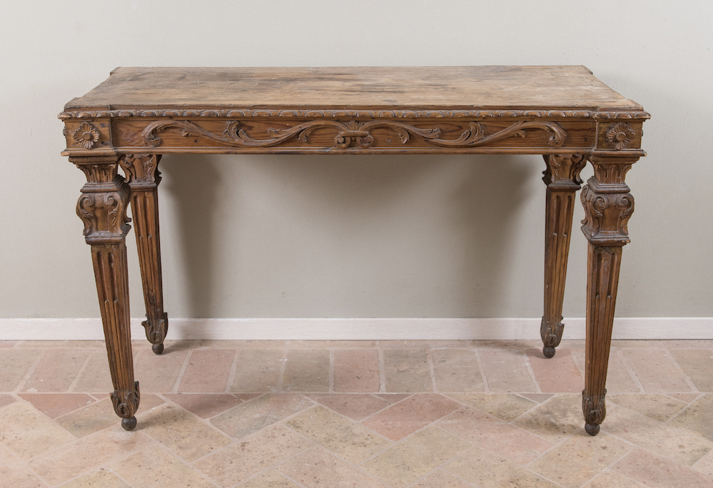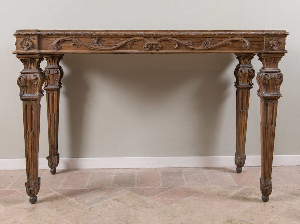 Consolle Luigi XVI realizzato in legno d'abete. Seconda metà del XVIII secolo. Cm 90x138x59. (mancanze e difetti)