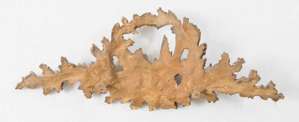 Cimasa in pastiglia con coppia di colombe con nido. Francia, fine XIX secolo.