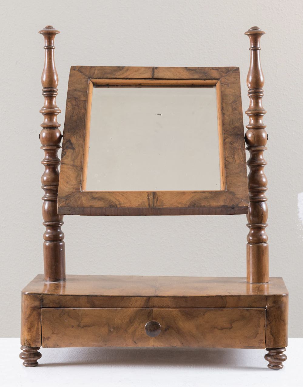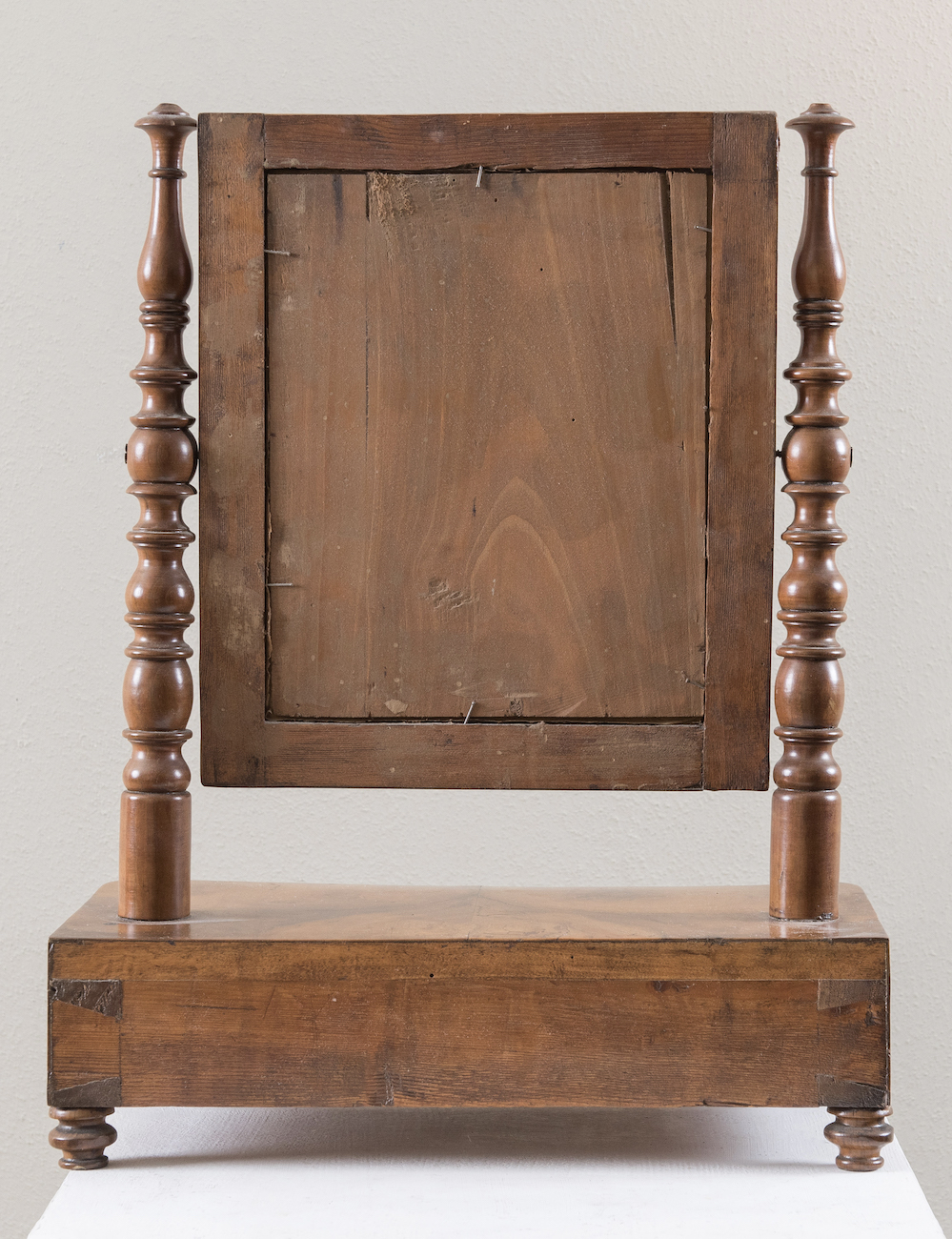 Specchio da toilette. XIX secolo. Lastronato in noce. Cm 51x40x20,5.