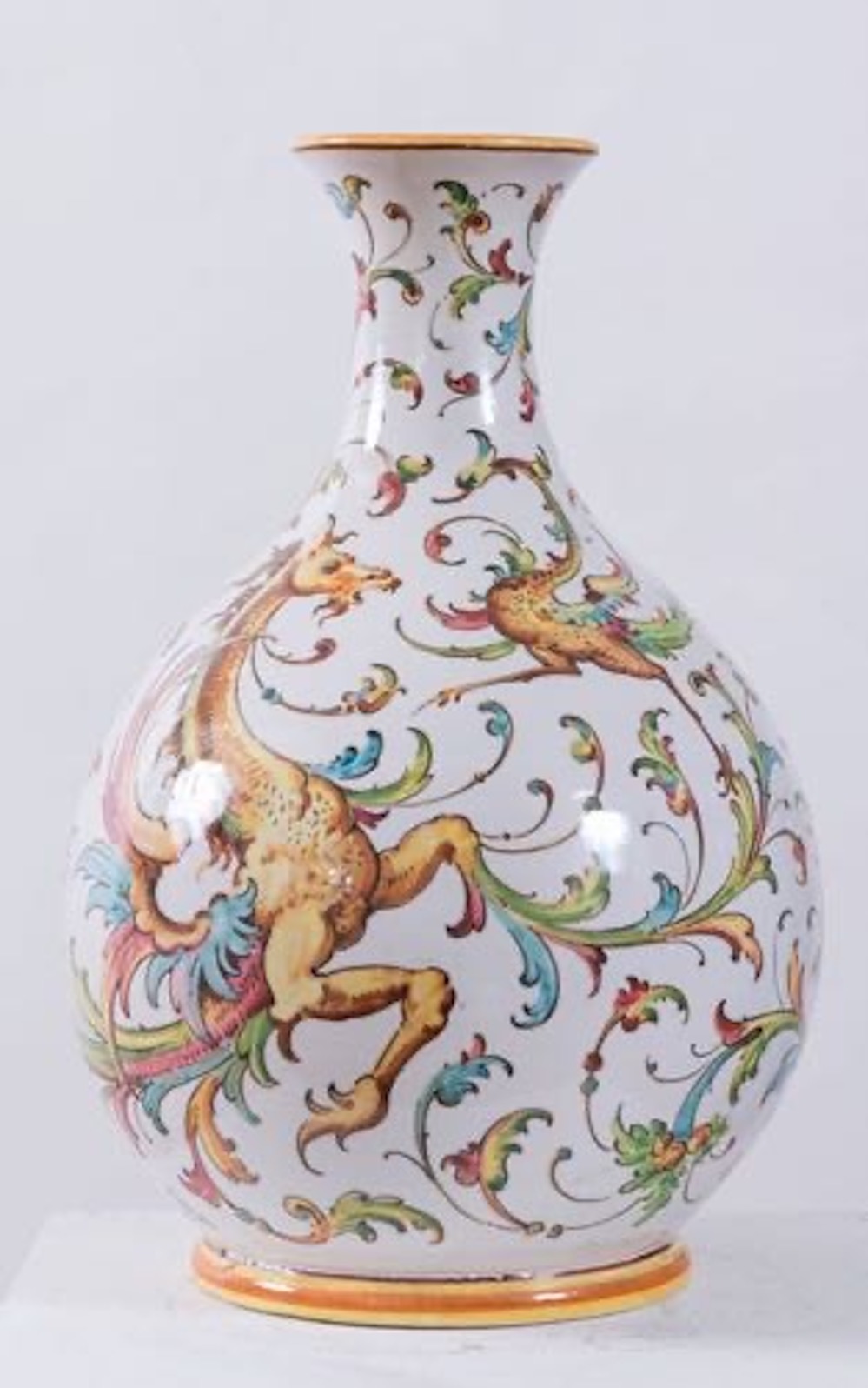 ANGELO MINGHETTI, Bologna, XX secolo. Vaso in ceramica policroma. H. cm 40;...