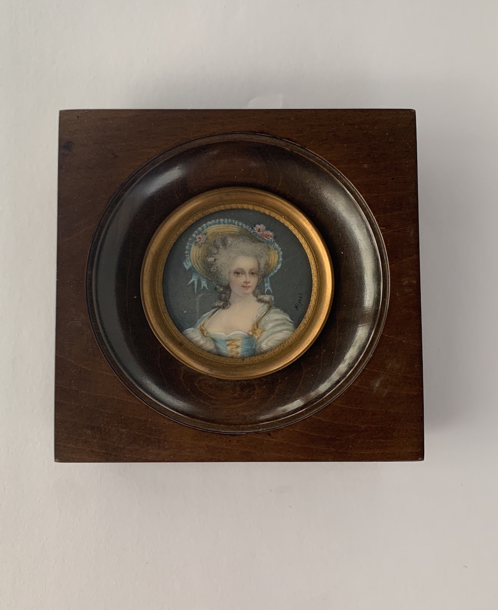 Coppia di miniature. Francia, fine del XIX secolo - XX secolo. Miniature: rispettivamente di cm 8x6 e 5,5x5,5.