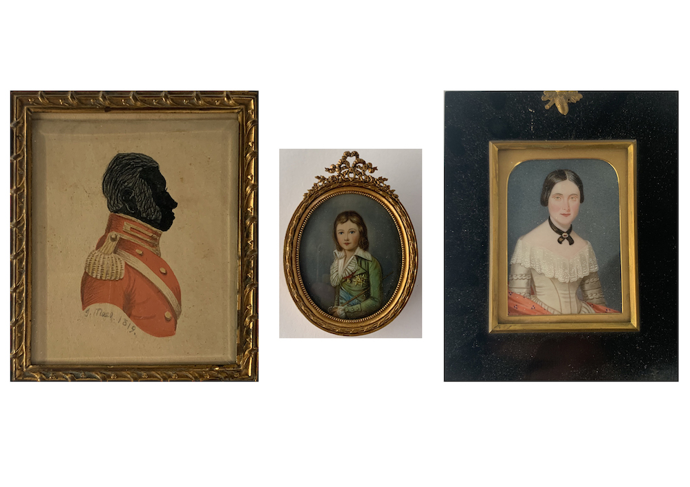 Lotto composto da tre miniature. XIX secolo. Miniature: rispettivamente di cm 6x5; cm 8,5x7; cm 9,5x7.