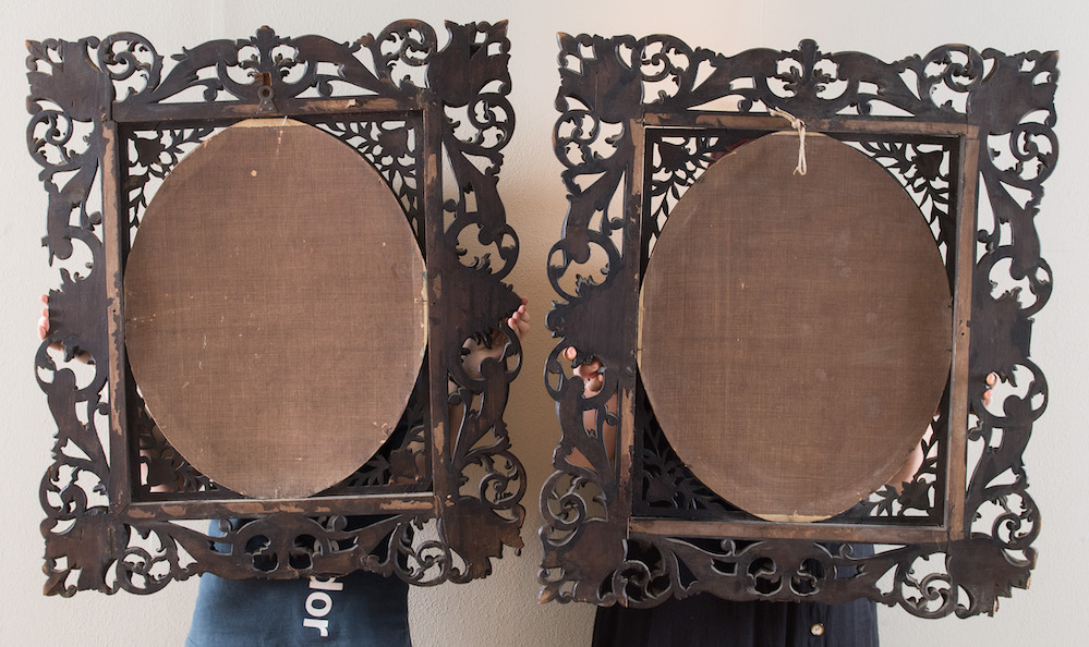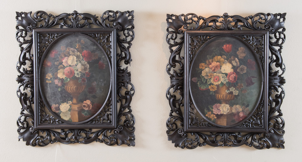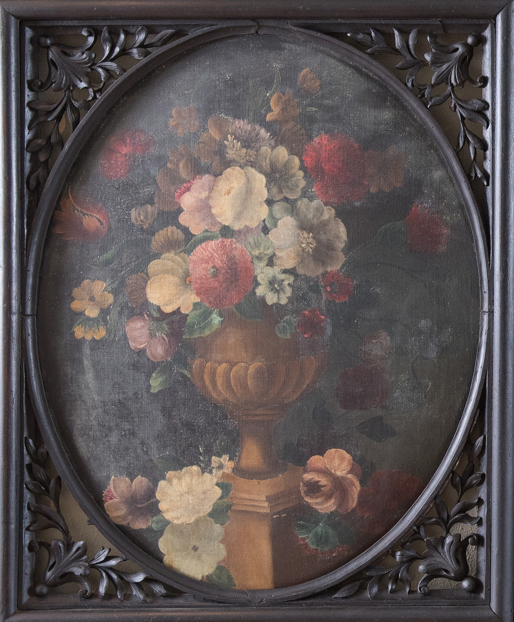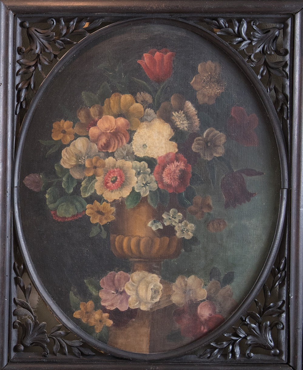 Pittore del XX secolo. Coppia di nature morte. Olio su tavola ovale. Cadauno di cm 59x47.