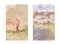 POMPEO MARIANI (Monza 1857 – Bordighera 1927) Coppia di tecniche miste su carta. Il primo reca sigla AM ed è di cm 12,5x8. Il secondo reca firma PMariani ed è di cm 12,5x8,2. Al retro recano autentica della Galleria d'Arte Cocorocchia con timbri dello Studio Pompeo Mariani.