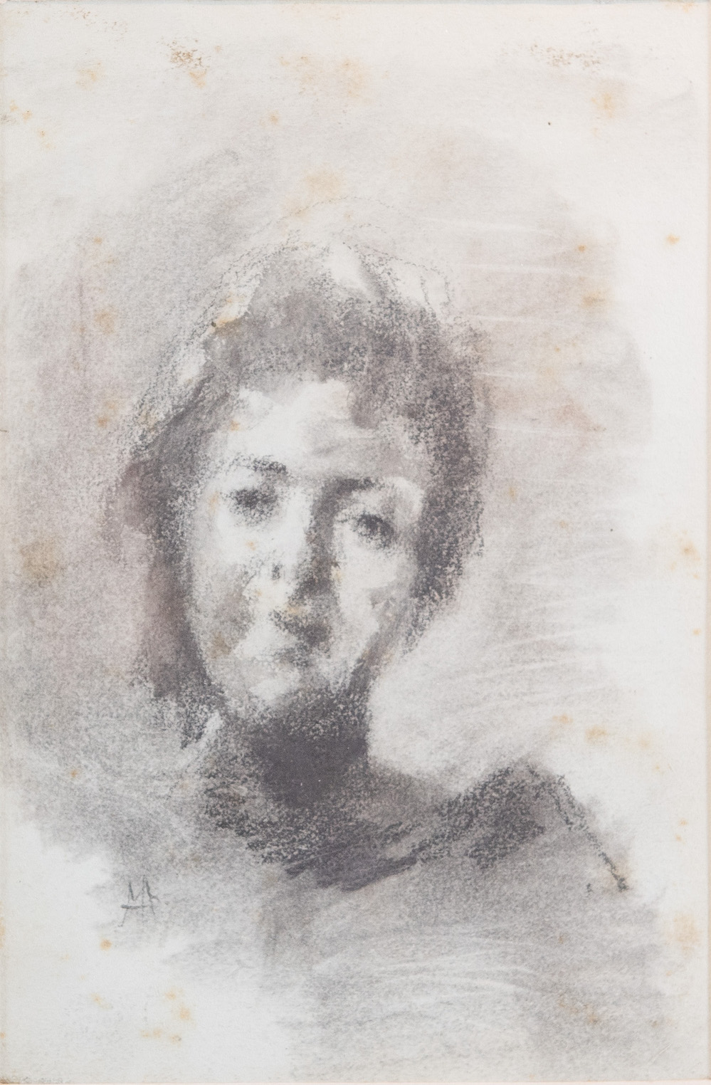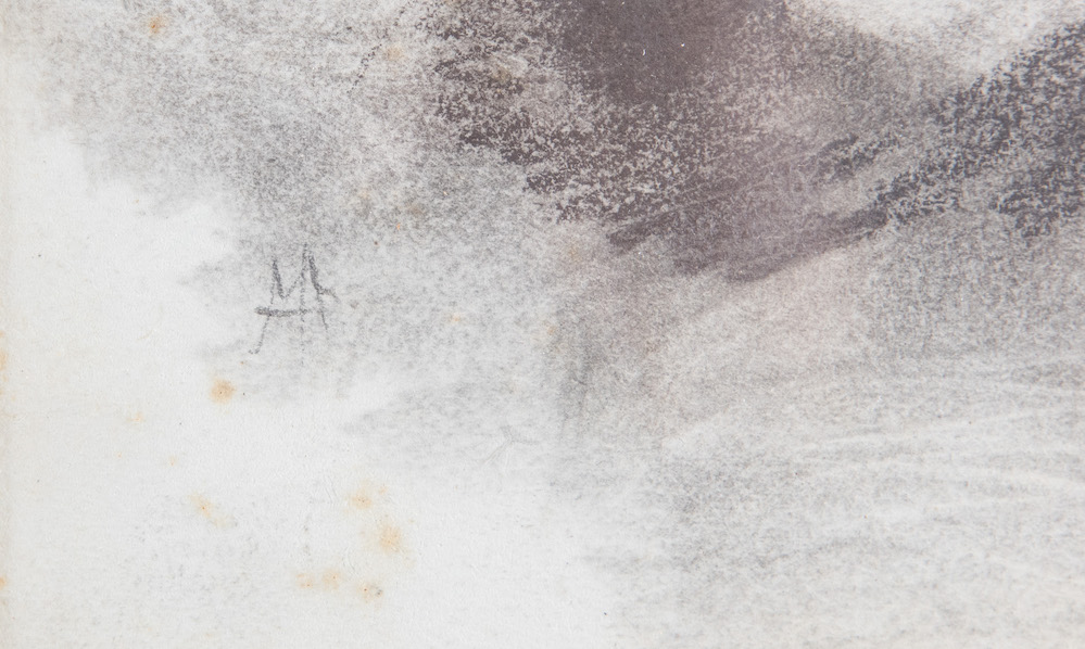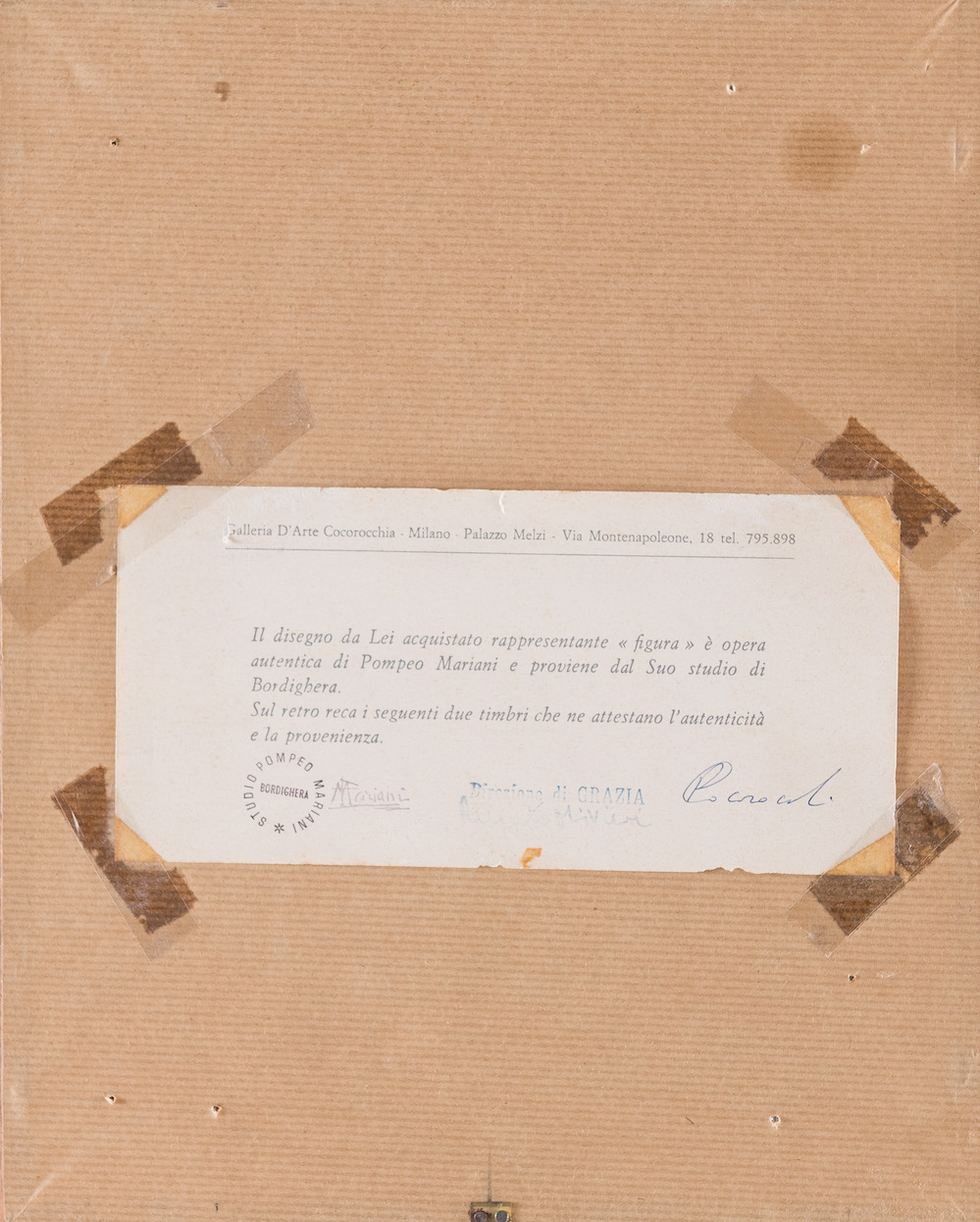 POMPEO MARIANI (Monza 1857 – Bordighera 1927) "Figura femminile" Disegno su carta. Cm 19,5x13. Reca sigla PM. Al retro reca autentica della Galleria d'Arte Cocorocchia con timbri dello Studio Pompeo Mariani.