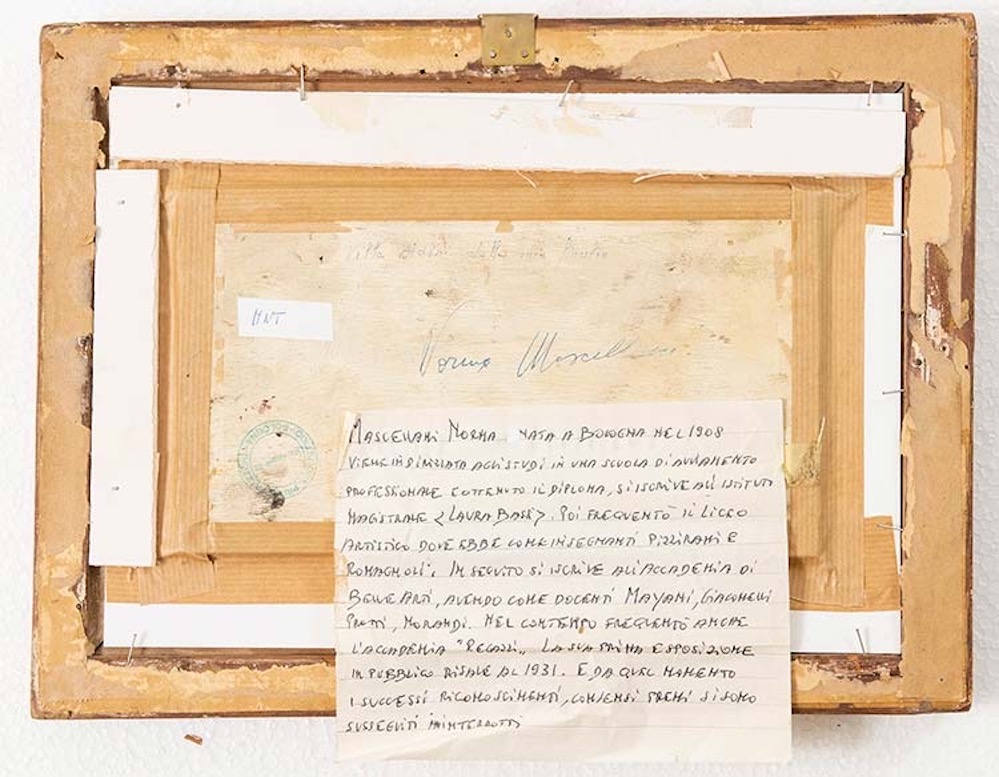 NORMA MASCELLANI (Bologna 1909- 2009) “Villa Aldini dalla mia finestra”. Olio su tavola. Cm 15x24. Opera firmata e intitolata al retro Norma Mascellani - Villa Aldini dalla mia finestra.