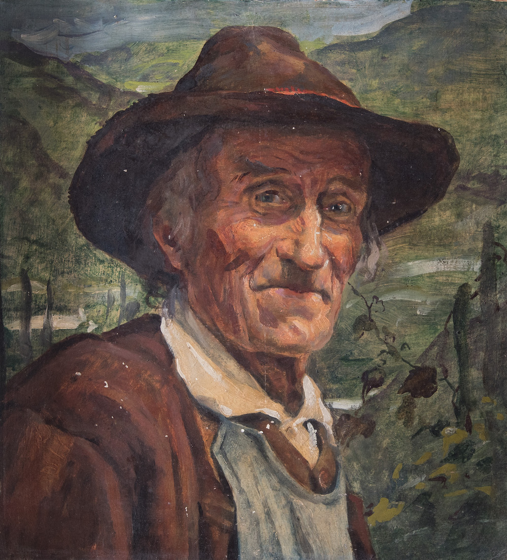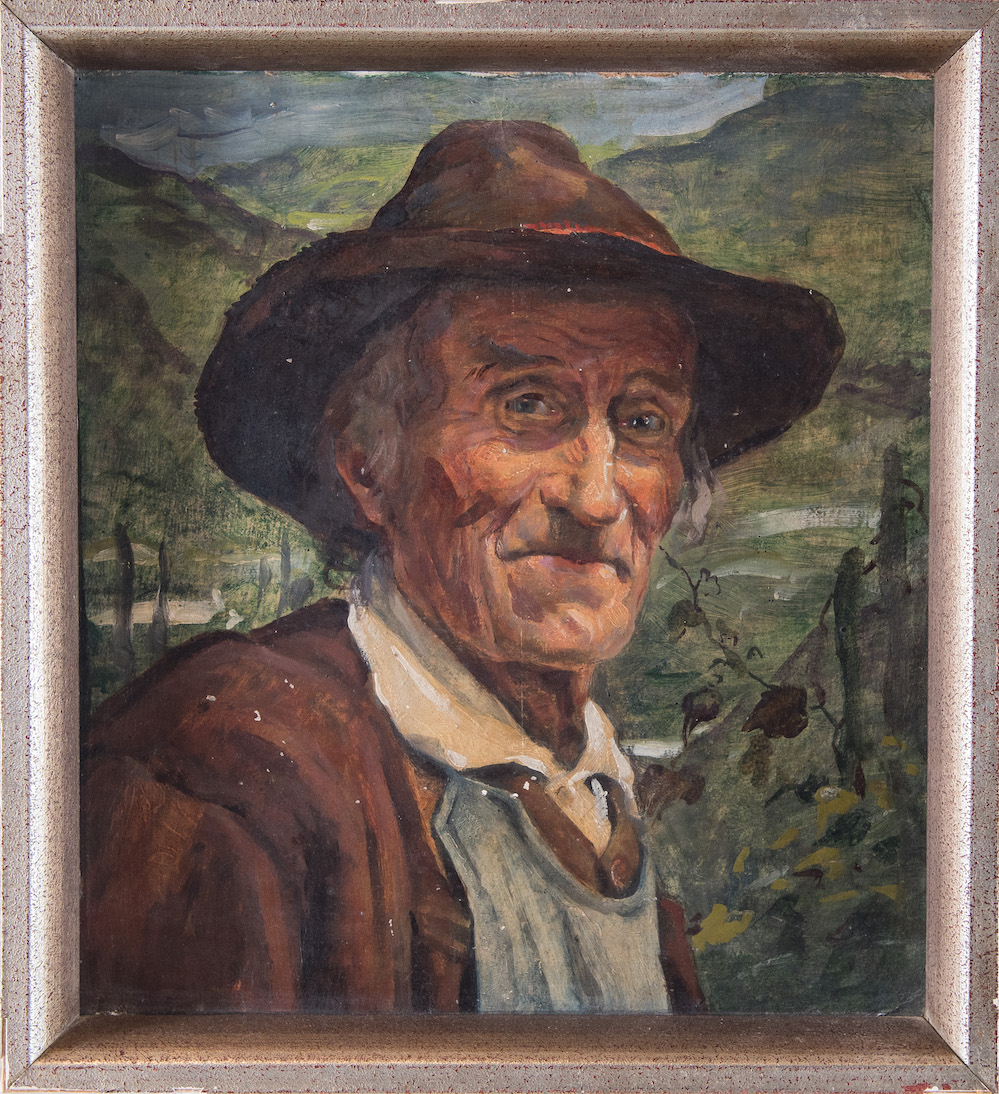 Pittore tedesco anonimo del XX secolo "Ritratto di vignaio". Olio su tavola....