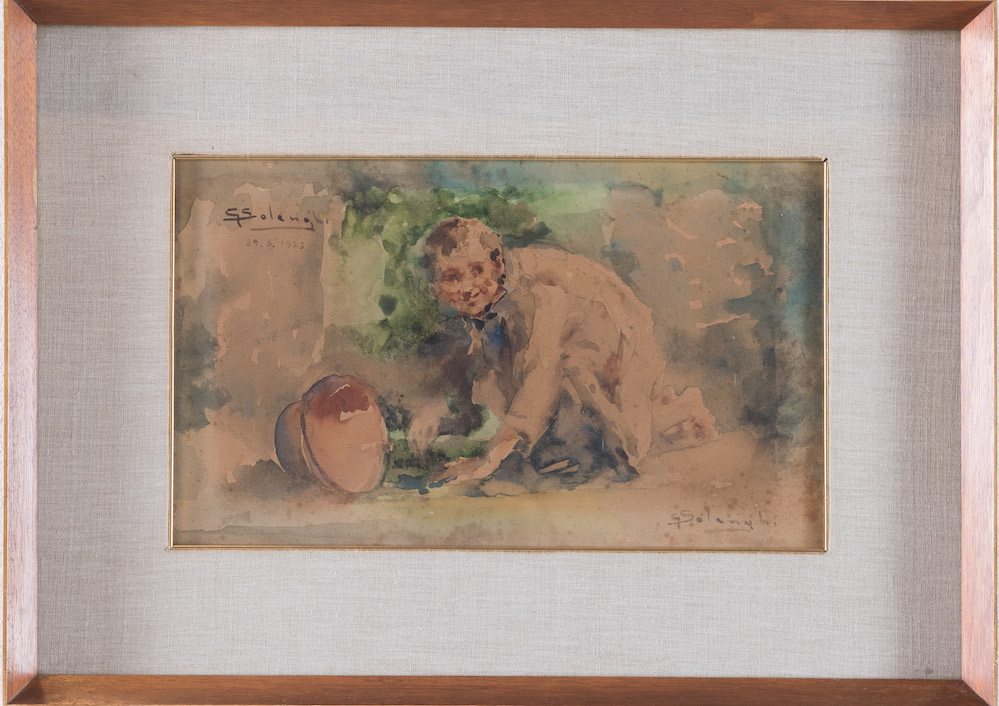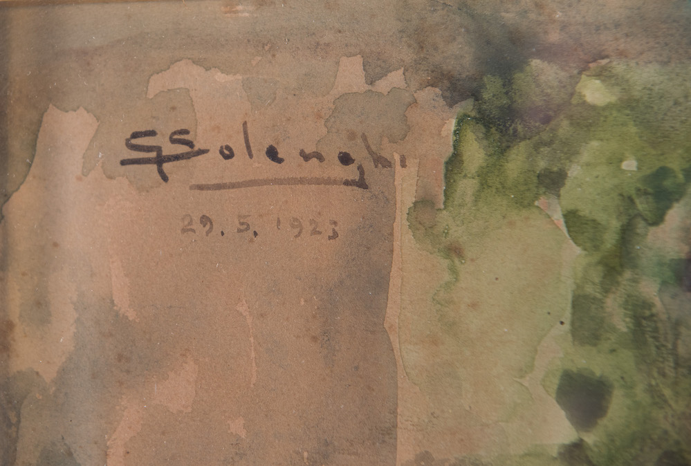 GIUSEPPE SOLENGHI (Milano 1879 - Cernobbio 1944) "Figura", 1923. Acquerello su carta. Cm 19x32. Opera firmata e datata in alto a sinistra G. Solenghi 29 Maggio 1923 e firmato in basso a destra G. Solenghi.