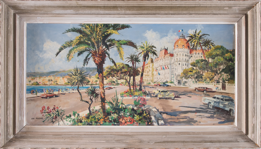 Léo FONTAN (1884-1965) "Hotel Negresco, Nizza". Olio su tela. Cm 40x80. Opera firmata in basso a sinistra Leo Fontan.