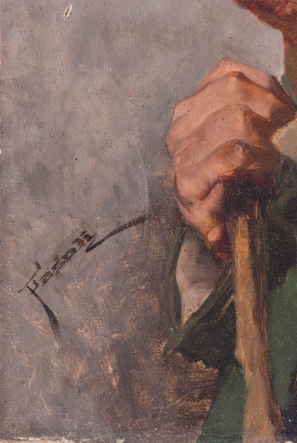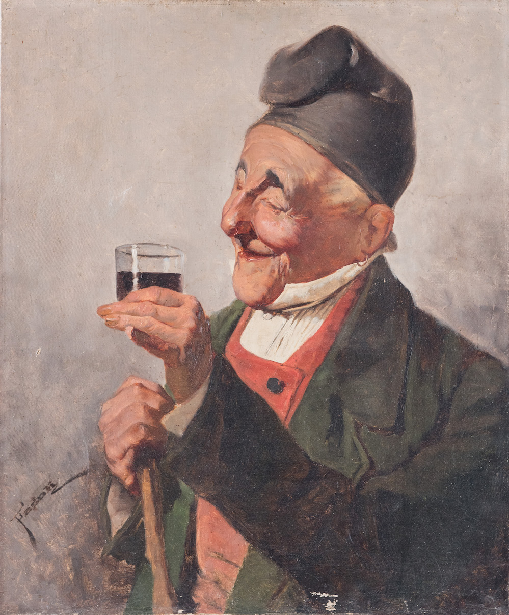 Pittore anonimo della fine del XIX secolo - inizio XX secolo. “Ubriacone”. Olio su tela. Cm 65x54. Opera firmata in basso a sinistra Fasoli.