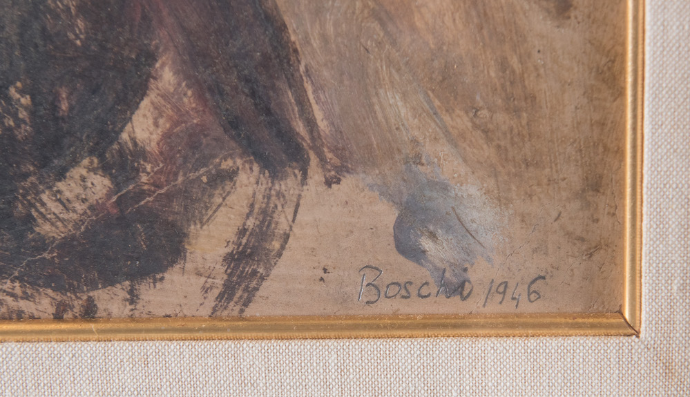 Lot 188 | DINO BOSCHI (Bologna 1923 - 2015) "Autoritratto", 1946. Olio su cartone. Cm...